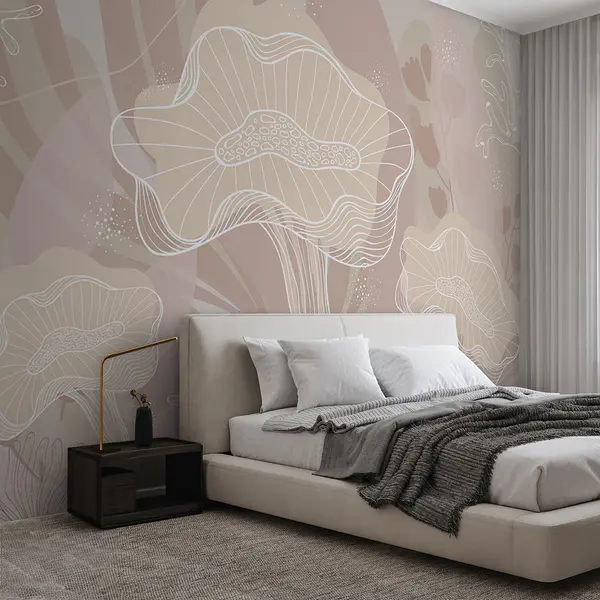 Wall murals Wall murals White outline of mushrooms (SKU: w03875)