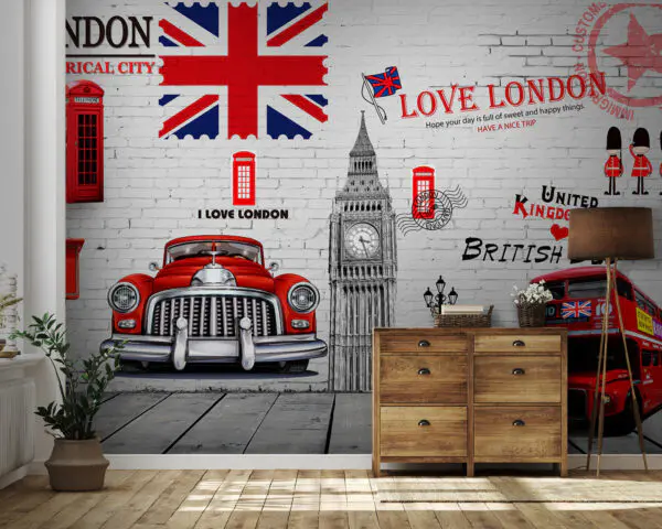 15.04 €9.03 €Wall mural Red bus and a red bus painted on a wall