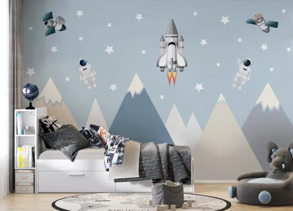 14.60 €8.76 €Wall mural Cartoon an astronaut walking on a planet with a rocket in the sky