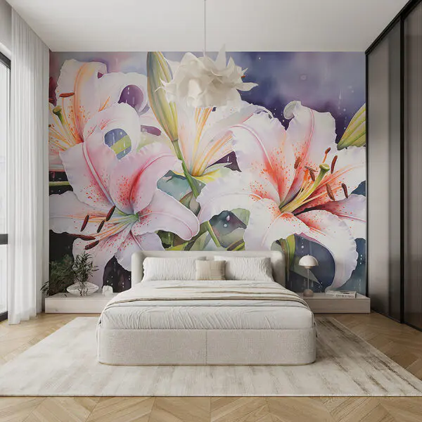 Wall murals Wall murals Colorful blooms in a serene backdrop (SKU: w02597)
