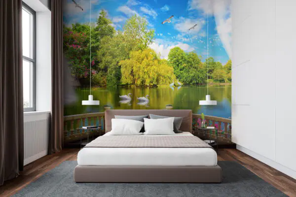 14.60 €8.76 €Wall murals View of a pond with birds and trees