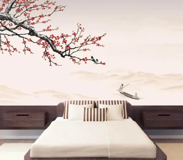 14.60 €8.76 €Wall mural Tree branch with red flowers and a man on a boat