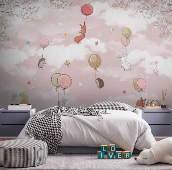 14.60 €8.76 €Wall mural Group of animals flying with balloons in the sky