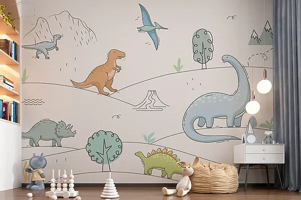 14.60 €8.76 €Wall mural A drawing of dinosaurs and mountains