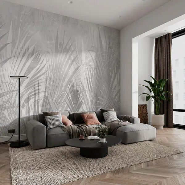 14.60 €8.76 €Wall murals A grey and white background with plants