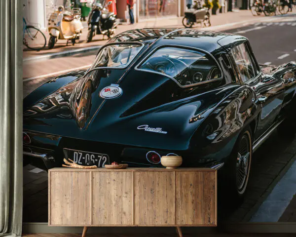 14.60 €8.76 €Wall murals Black car with wheels in front of a colorful wall
