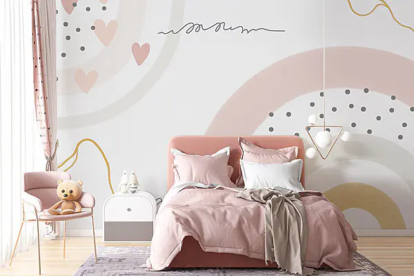 14.60 €8.76 €Wall mural A white background with pink and grey circles and dots