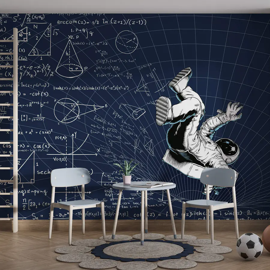 Wall murals Man in space suit falling on a board with math equations