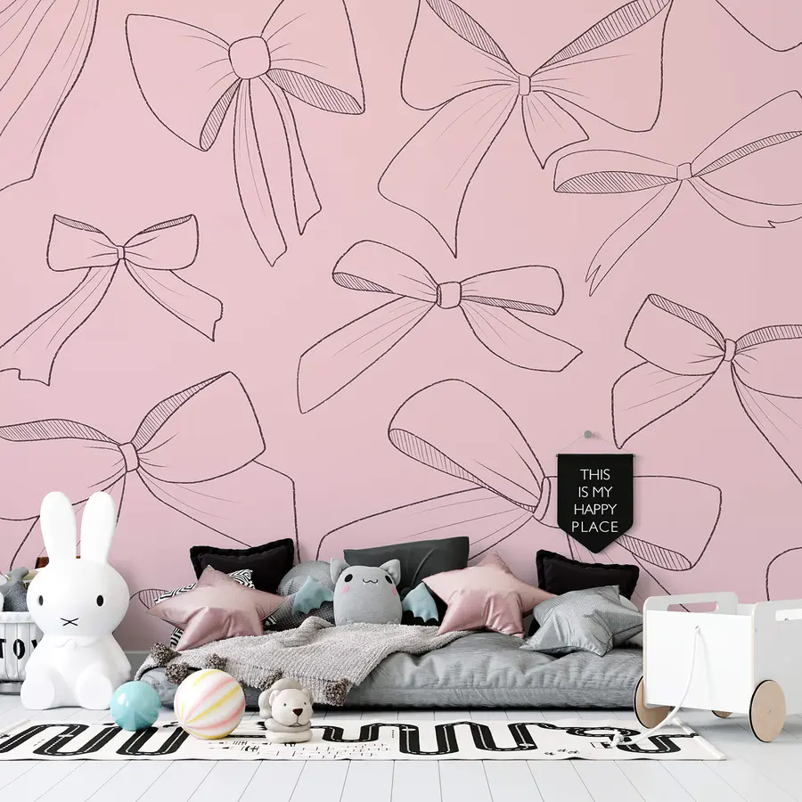 Wall murals Pattern of bows on a pink background
