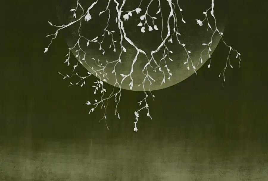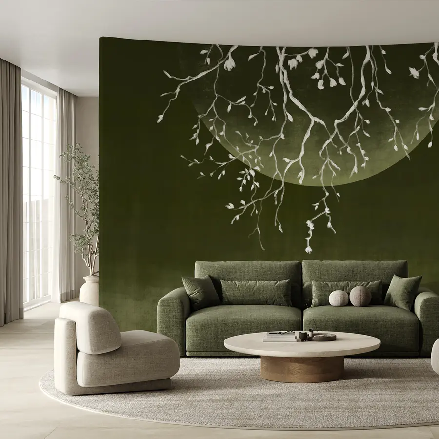 Wall murals Tree branches with leaves and a moon