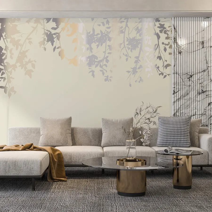 Transform your space with this enchanting wall mural featuring delicate tree branches and leaves. Picture this: a cozy corner, sunlight streaming in, and voilà, nature's charm right at home. It creates a calm vibe, like a gentle breeze rustling through foliage. The soft colors play nicely with any decor, making the room feel fresh without screaming for attention. Perfect for a living room or an inspiring workspace, this mural sets a tranquil scene. Imagine sipping your morning coffee surrounded by leaves gently whispering stories of the outdoors. A perfect touch for those who crave a little nature in their lives.