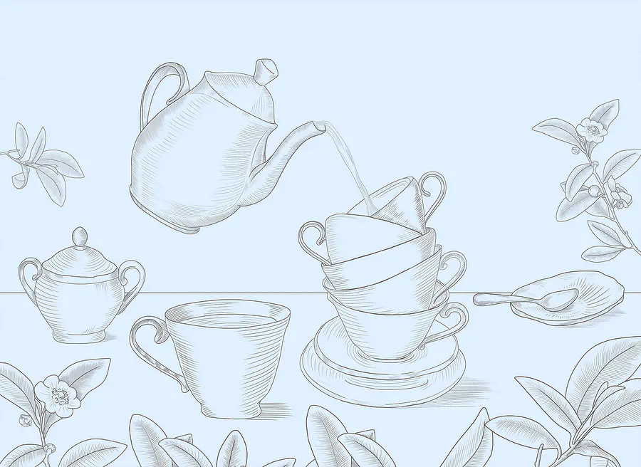 Wall murals Teapot pouring into a stack of teacups