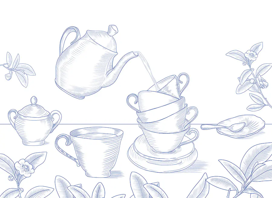 Imagine stepping into a cozy tearoom where the sweet scent of blooming roses mingles with a delicate breeze. This wall mural, featuring a teapot pouring into a stack of teacups, adds a playful touch to any space. It's like an invitation to slow down and enjoy life’s simple pleasures. Picture hosting a gathering, where friends gather, laughter echoes, and everyone admires the artwork—wouldn’t that be delightful? The gentle lines and soft hues create a calming atmosphere, turning a plain wall into a conversation starter. Perfect for anyone who believes that a cup of tea is just a bit more special when shared.