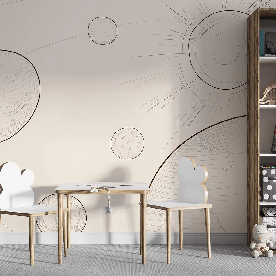 Wall murals Drawing of the sun and earth