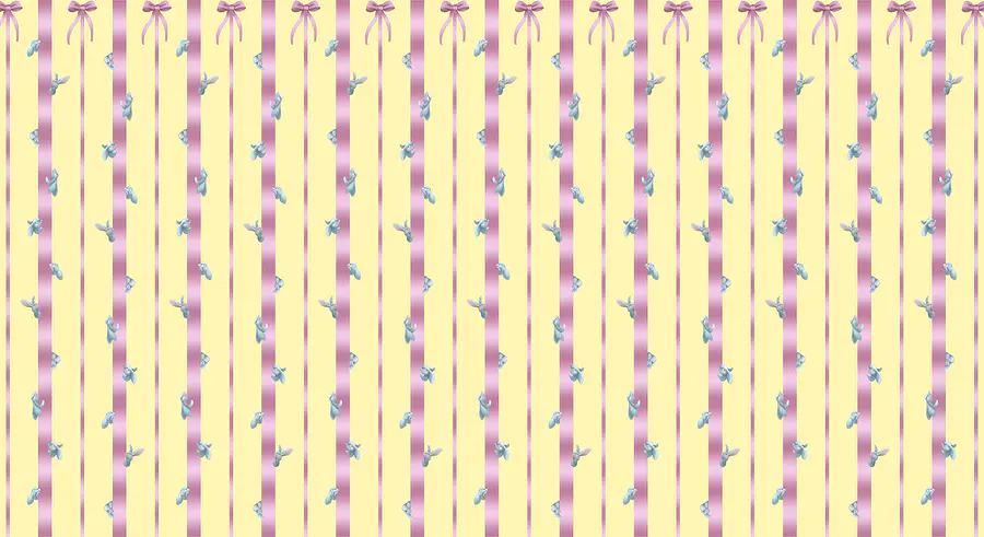 Wall murals Pink and yellow striped background with birds and bows