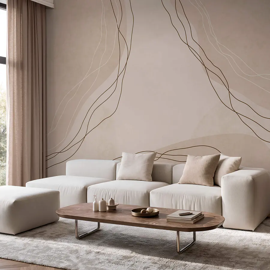Wall murals White and brown lines on a beige background
