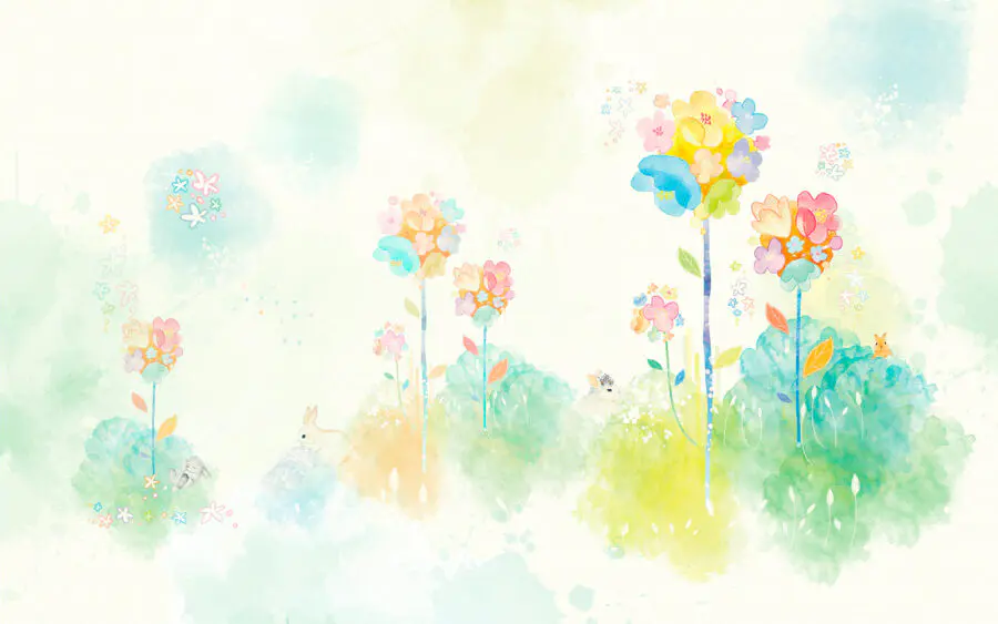 Wall murals Watercolor painting of flowers and rabbits