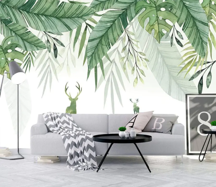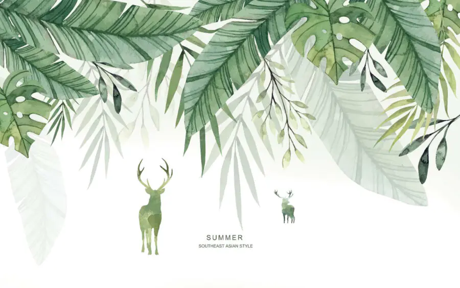 Wall murals Watercolor painting of a deer and leaves