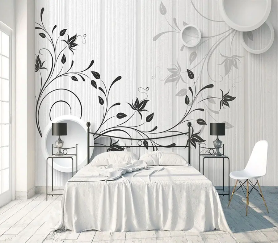Wall murals White wall with black and white flowers