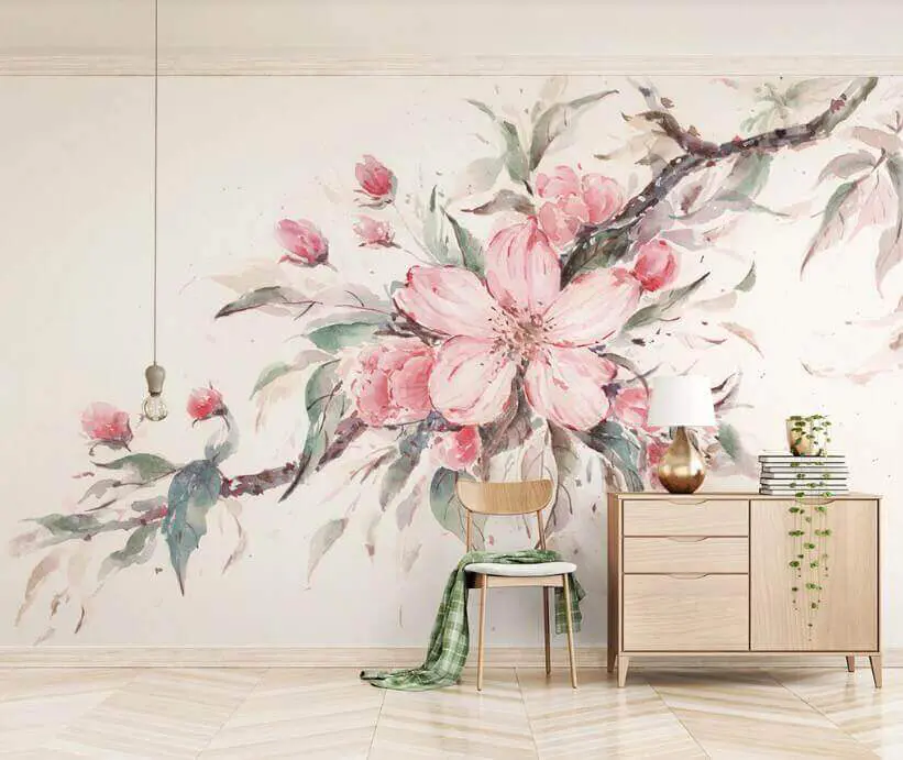 Transform any room into a serene escape with this stunning wall mural of pink flowers nestled on a delicate branch. It’s like bringing a whisper of a Japanese garden right into your home. Imagine sipping tea, surrounded by beautiful blooms that seem to dance softly with the light. The gentle hues and watercolor style cast a warm, inviting glow, making it perfect for a cozy nook or a calming bedroom oasis. Plus, who wouldn’t want a piece of art that gives off major spring vibes all year round? Talk about a mood booster!