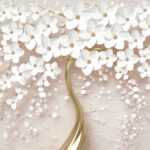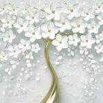 Wall murals Tree with white flowers and leaves