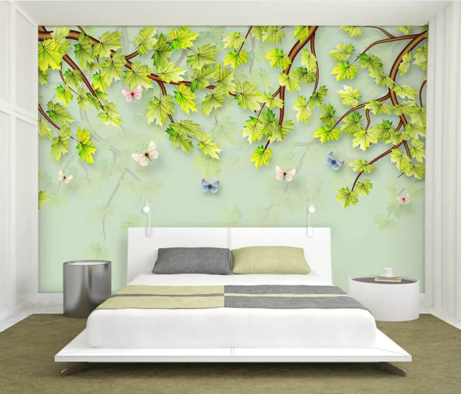 Transform your space into a serene haven with this enchanting mural of green leaves and butterflies. Picture it—sunshine streaming in, and those delicate butterflies flitting about, bringing a bit of nature indoors. The vibrant greens pop against a soft white background, making every day feel a tad more magical. Whether it’s a cozy living room or a playful child’s bedroom, this mural whispers calm and creativity. Perfect for anyone who’s ever dreamed of sitting under a leafy canopy. It’s not just decor; it’s a daily breath of fresh air. Who wouldn’t want that?