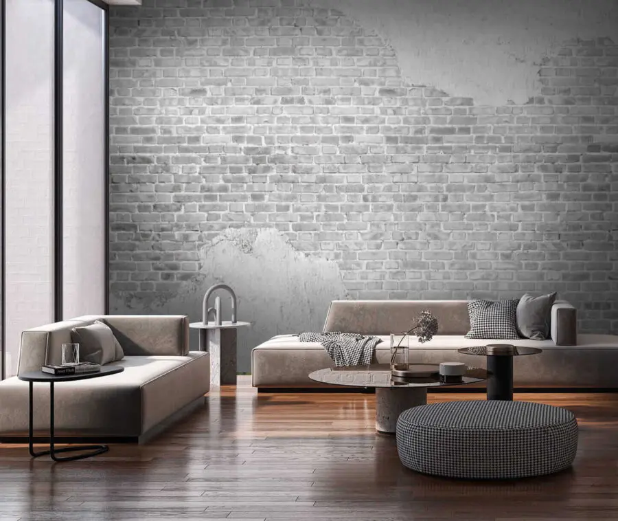 Wall murals White brick wall with a white stain