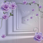 Wall murals Wallpaper with purple roses and a staircase