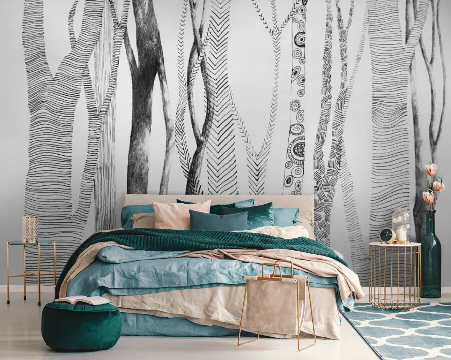 Bring the tranquility of the forest into any room with this stunning wall mural featuring trees drawn with elegant lines. It’s like having a slice of nature right on your wall, minus the bugs! The playful patterns and varied textures in the bark create a cozy, inviting vibe that warms up even the coldest of spaces. Imagine curling up with a cup of tea and getting lost in the intricate designs—perfect for daydreaming or unwinding after a hectic day. This mural isn’t just décor; it's an escape into a peaceful woodsy wonderland, right in your home.