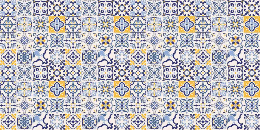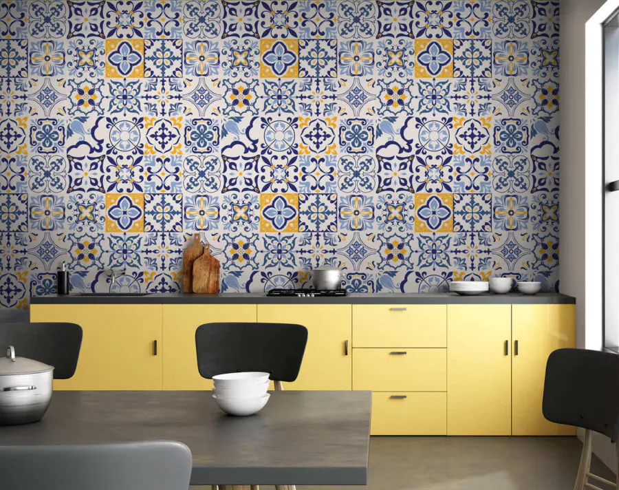 Wall murals Pattern of blue and yellow tiles