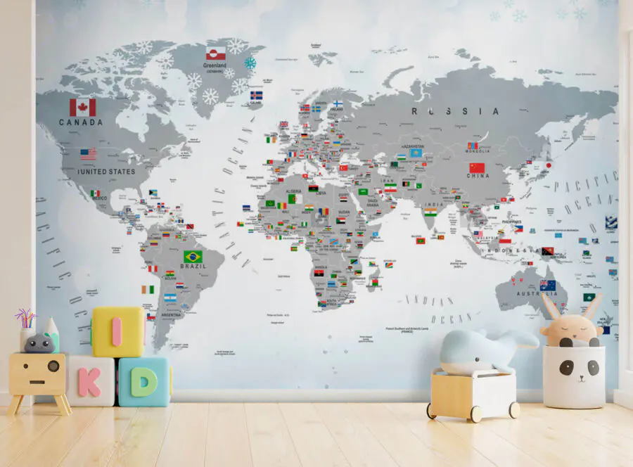 Wall murals Map of the world with flags