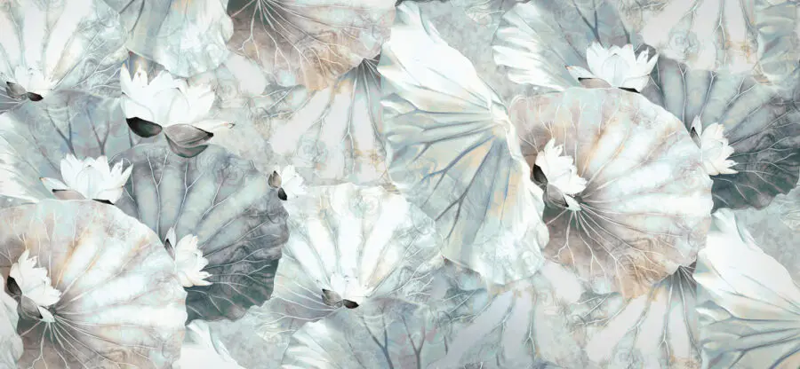Wall murals Elegant lilies on soft water leaves