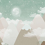 Wall murals A moon and clouds over mountains