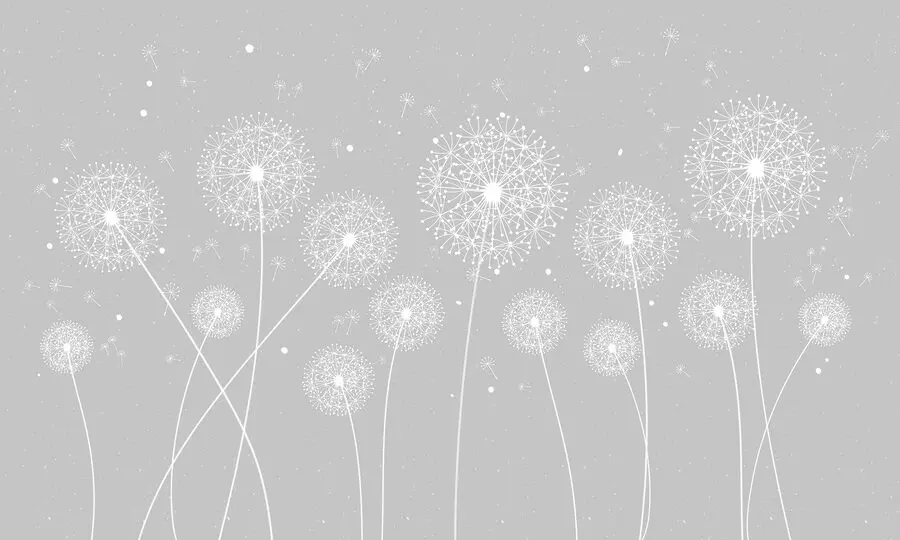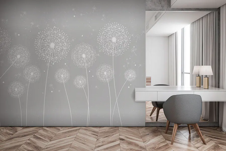 Wall murals A white dandelions on a grey background
