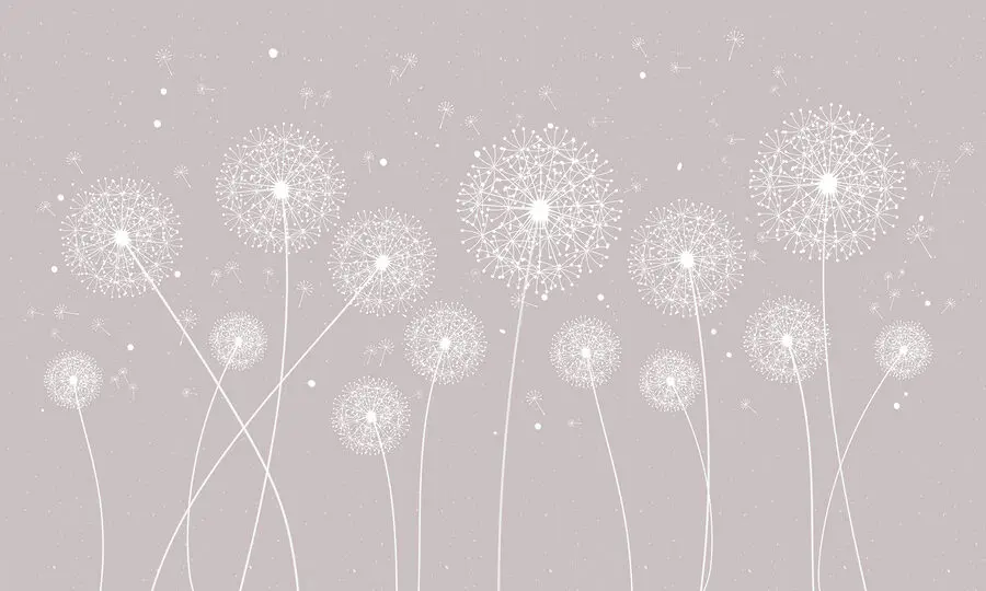 Wall murals A white dandelions on a grey background