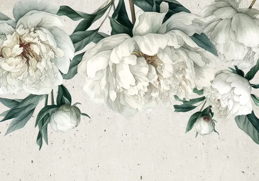 14.38 €7.91 €Wall murals White wall with flowers and leaves
