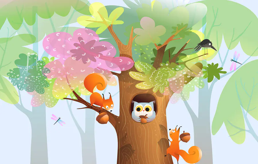 Wall murals Cartoon of animals in a tree