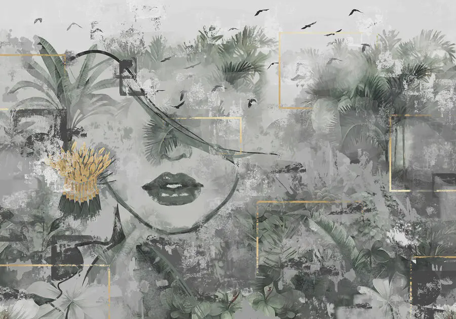 Transform any space with this stunning wall mural featuring a woman's face intertwined with lush plants. Imagine stepping into a room where nature and art collide—soft greens and hints of floral beauty create such a peaceful vibe, it’s like a mini escape into the tropics. This piece not only captivates attention but also sparks conversation. Perfect for a living room or bedroom, it brings a touch of modern elegance without trying too hard. Just picture it: cozy evenings with dim lights, and this mural setting the mood. It's a little slice of artistry that'll have everyone feeling relaxed and inspired.