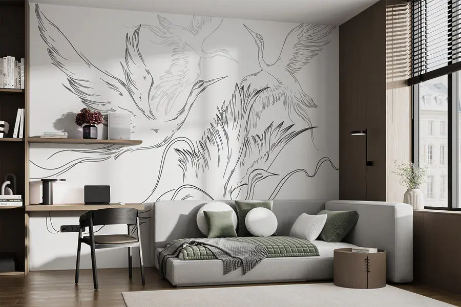 Wall murals Drawing of birds flying