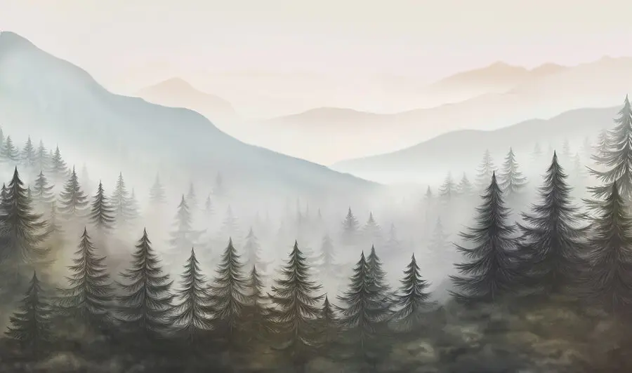13.87 €8.33 €Wall murals Landscape of mountains with trees and fog