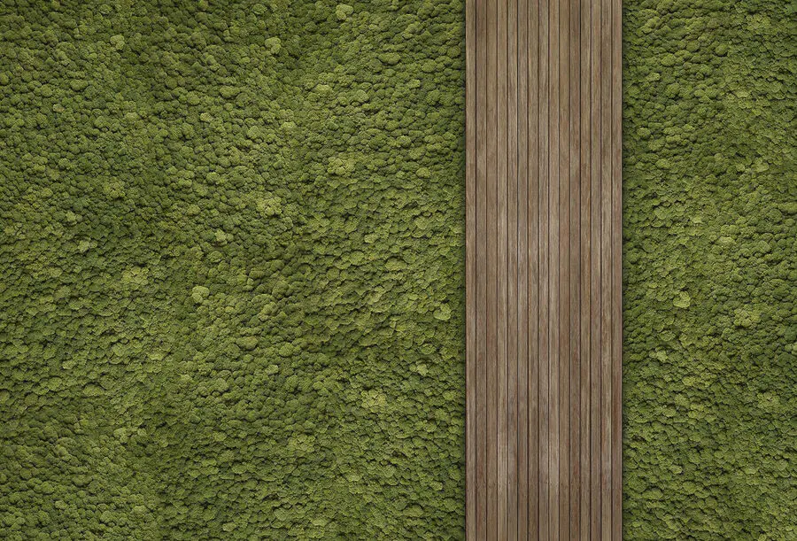 Wall murals Wood plank on a green carpet