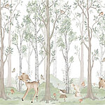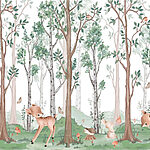 Wall murals Wallpaper with a forest of trees and animals