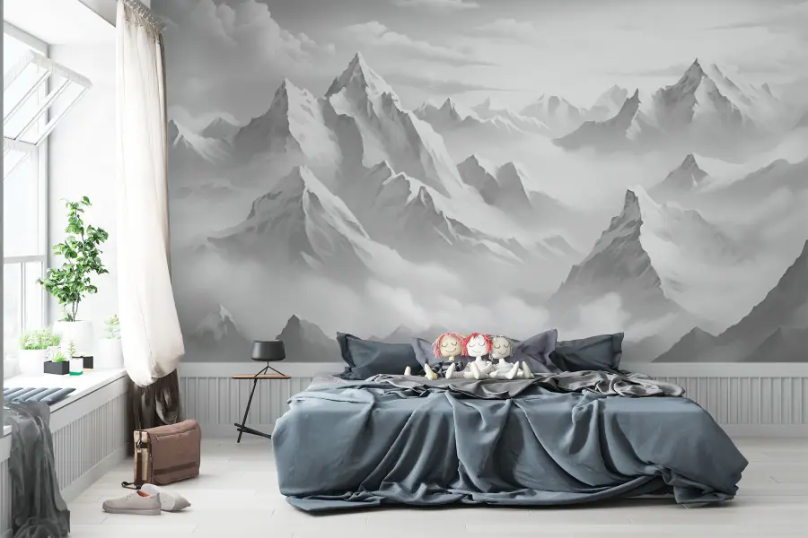 Transform any room with this stunning wall mural featuring a majestic mountain range set against a backdrop of soft, swirling clouds. It feels like stepping into a serene escape, making it an instant conversation starter. Imagine enjoying your morning coffee while gazing at those peaceful peaks, or losing yourself in thought as the clouds drift effortlessly by. There’s something about those rugged mountains that adds depth and calm to your space. It’s like bringing a piece of nature indoors—no hiking gear required. Perfect for those who crave a little adventure without leaving home!