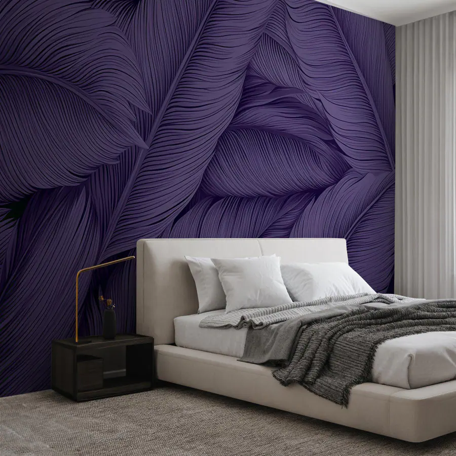 Wall murals Lush leaves in deep purple hues
