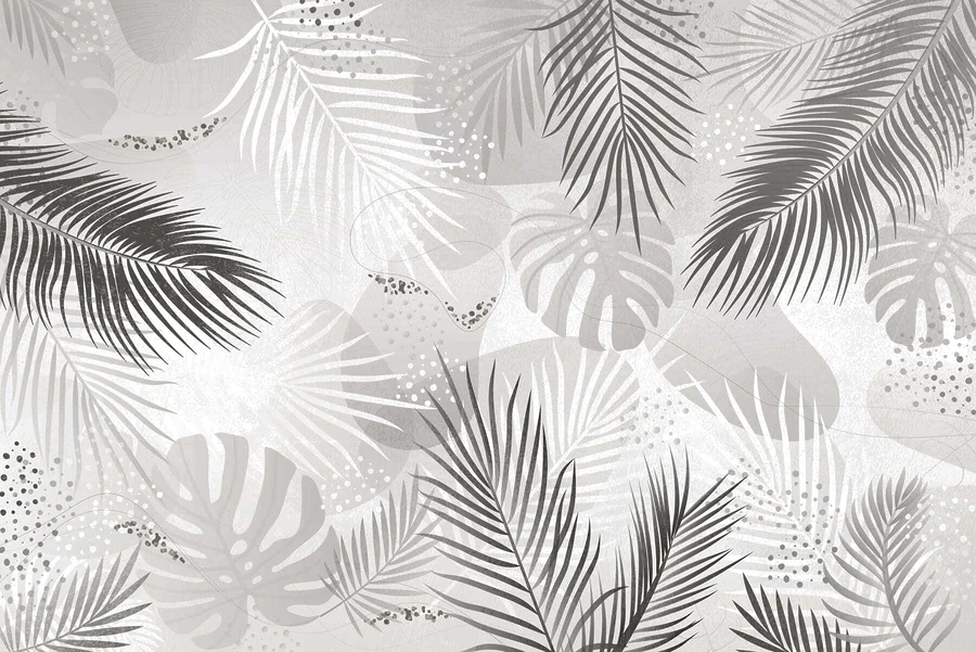 Wall murals Grey and white background with leaves