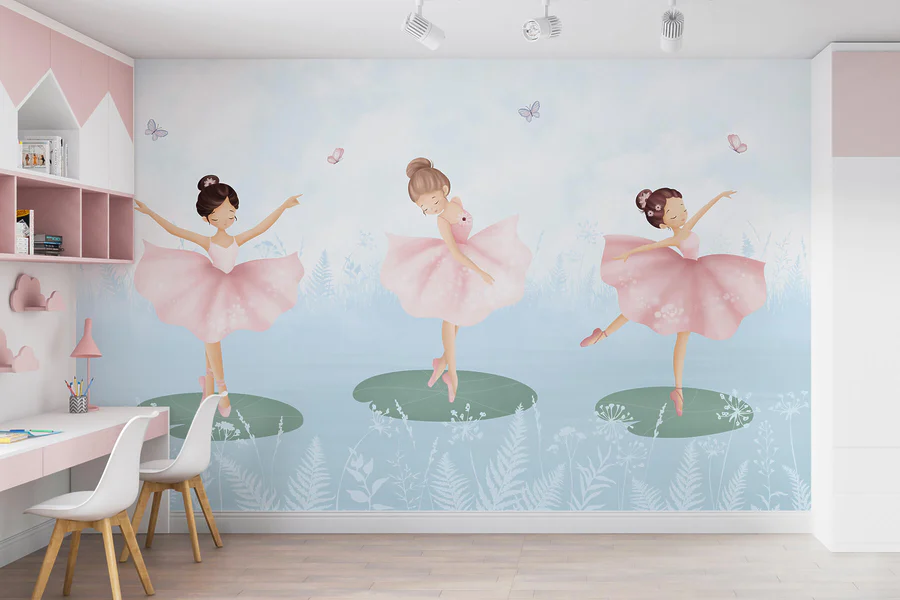 Wall murals Group of girls in pink tutu dancing on lily pads