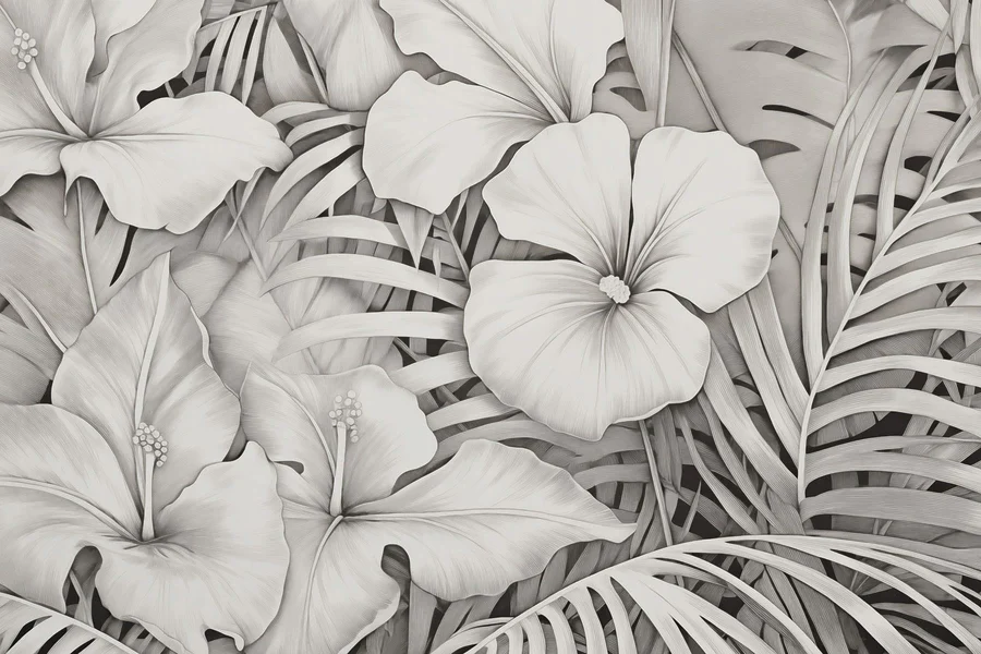 Transform any space with the "Lush Foliage in Monochrome Tones" mural! This dreamy design brings the beauty of nature right into your home, all wrapped up in soothing black-and-white hues. Imagine waking up in a room where soft petals and delicate leaves seem to whisper secrets of a tropical paradise. It’s like a breath of fresh air—minus the pollen sneezing! Perfect for a cozy reading nook or a statement wall that makes guests go, “Wow!” You’ll feel relaxed and inspired every time you glance at it, as if you're wandering through a tranquil garden. Embrace the beauty of nature's simplicity—what's not to love?