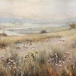 Wall murals Painting of a field of grass and a river