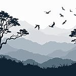 Wall murals Birds flying over a mountain range