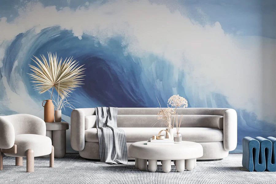 Dive into a serene escape with the "Large Wave in the Ocean" mural. Imagine waking up each morning to the soothing sight of rolling waves, gently crashing into your space. The soft blues and whites swirl together like a calming ocean breeze, instantly transporting any room into a coastal paradise. It’s like having your own slice of nature right on the wall. Picture cozy evenings splashed in this tranquil ambiance, maybe even paired with a cup of chamomile tea, while contemplating life or planning your next beach getaway. Perfect for nature lovers or anyone seeking a peaceful vibe, it’s sure to spark some serious daydreaming.